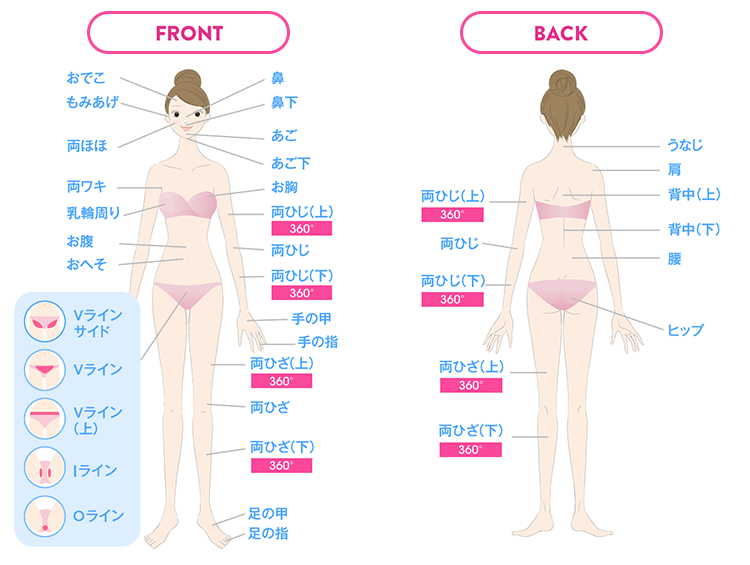 - 「顔・VIO込みの全身360°脱毛」で全身まるごとツルスベに
